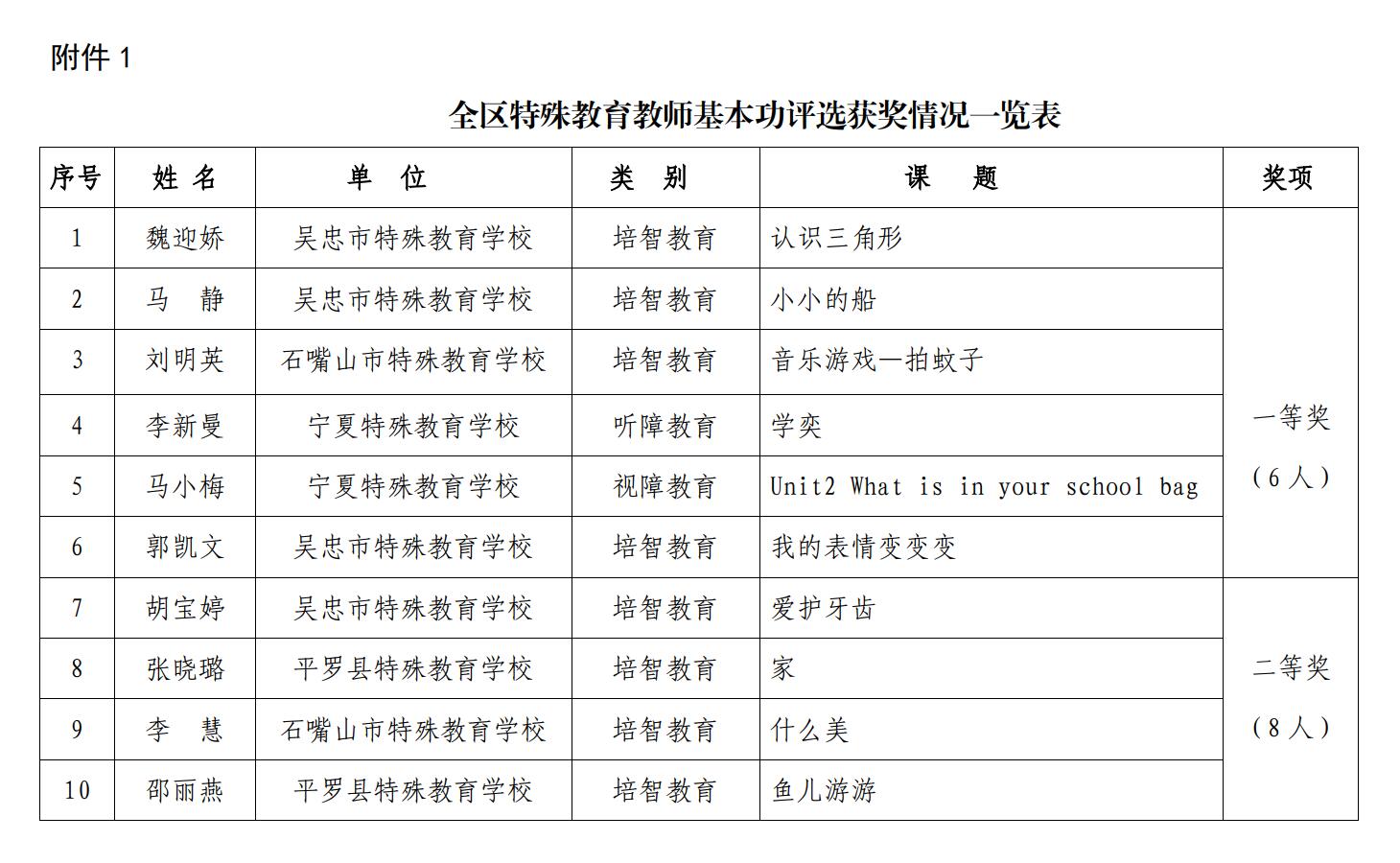 附件:1.全区特殊教育教师基本功评选获奖情况一览表
