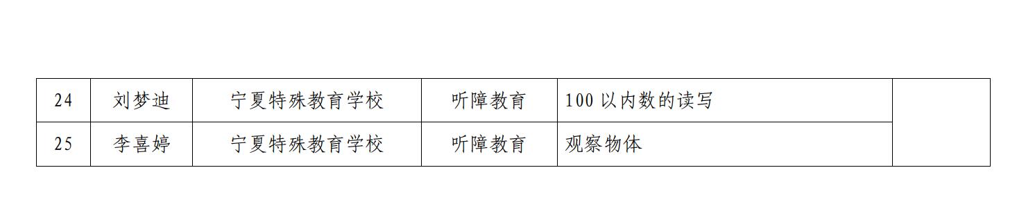 根据《北海365最新房屋出租_365bet手机在线注册_365足球教育厅办公室关于开展特殊教育教师教学基本功展示和融合教育优秀教育教学案例遴选活动的通知》,经各地教育部门和特殊学校推荐、专家组织审核评定等程序,拟确定“特殊教育教师基本功展示”作品25件、“融合教育优秀案例”10件(详见附件),优秀组织奖4个(其中,优秀案例组织奖1个:银川市教科所;教师基本功优秀组织奖3个:吴忠市特殊教育学校、石嘴山市特殊教育学校、平罗县特殊教育学校)。