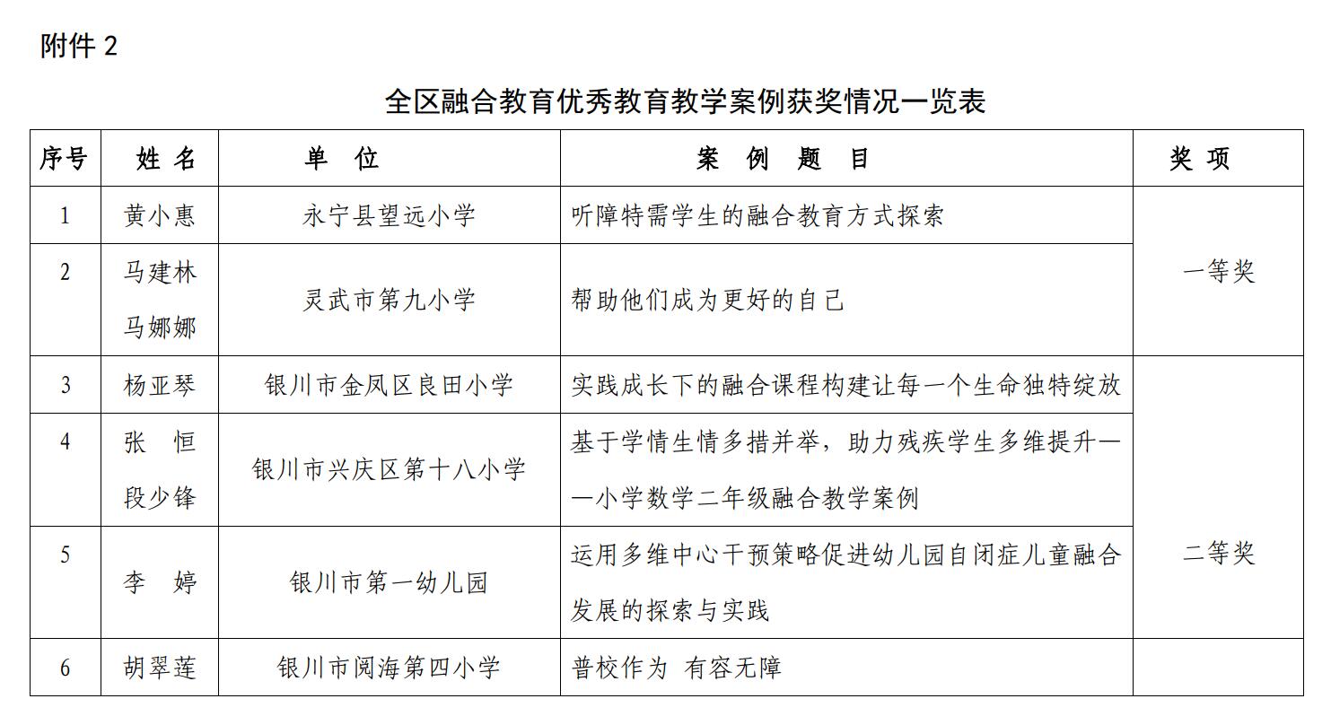 2.全区融合教育优秀教育教学案例获奖情况一览表