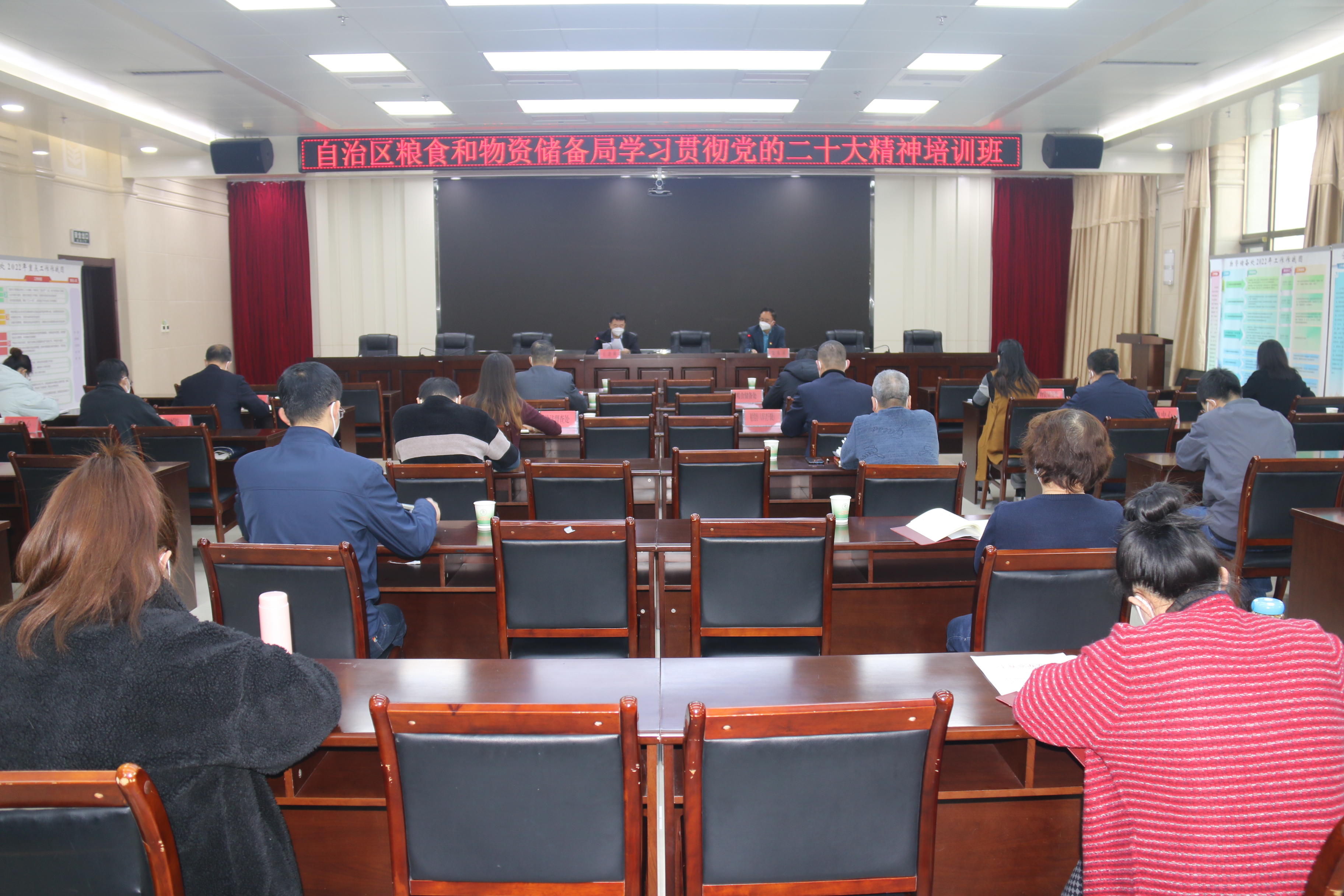 培训期间,局党组书记、局长蒋文斌紧密结合粮食和物资储备工作,以《奋进新征程 夺取新胜利 奋力谱写宁夏粮食和物资储备事业新篇章》为题,为全系统上了精彩的专题党课,邀请北海365最新房屋出租_365bet手机在线注册_365足球党校常务副校长郝彤、北海365最新房屋出租_365bet手机在线注册_365足球党校教授王琼分别就党的二十大精神和《中国共产党章程(修正案)》进行了宣讲,反响热烈。期间还组织观看了中央党校教授、中央广播电视总台特约评论员、中国政法大学教授等专家关于党的二十大精神专题辅导讲座,组织参观了党的二十大和习近平总书记视察宁夏重要讲话指示批示精神“大学习、大讨论、大宣传、大实践”活动主题展,观看了《远离家庭腐败》等廉政教育片,列出4个专题、分4个小组组织党员干部开展交流研讨,进一步统一了思想,深化了认识、凝聚了共识。